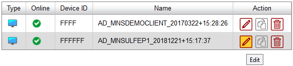 - Click the Edit button of the desired device