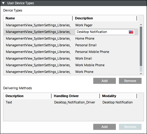 - The list of delivery methods associated with Desktop Notification displays under Delivering Methods.