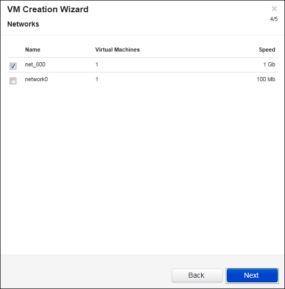 1. On the Networks page, select the shared networks to attach to the VM. For more information, see the Planning Virtual Machine Networks section of the everRun’s User’s Guide. Click Next.