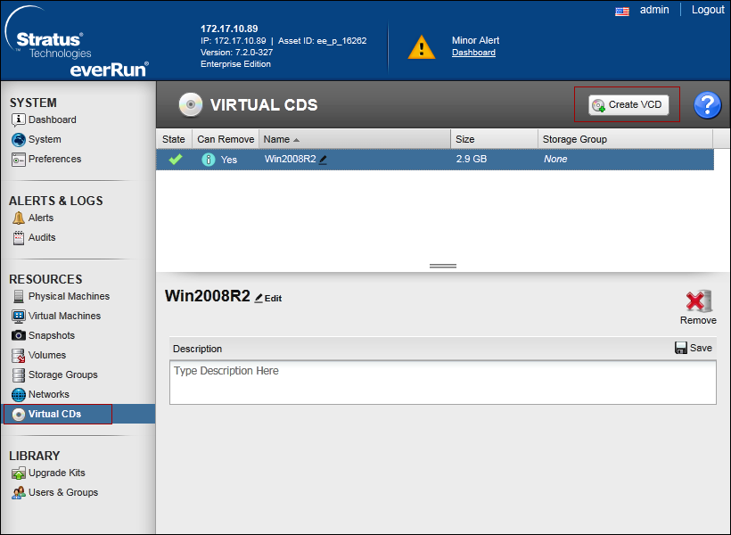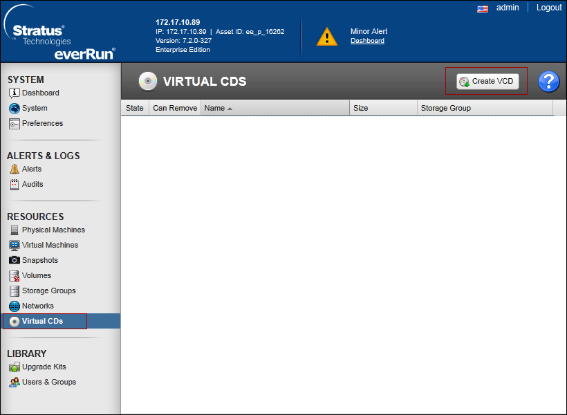1. Open the Virtual CDs page in the everRun Availability Console.