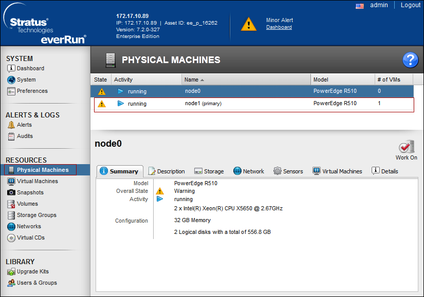 1. Select Physical Machines to verify that node1 is the primary physical machine.