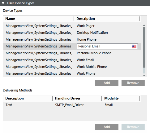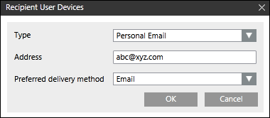 In the Recipient User Devices dialog box, from the Type drop-down list, select Personal Email or Work Email as a recipient device for the corresponding recipient user.