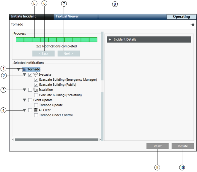 2 | Incident | Displays the description of the initiated incident. |