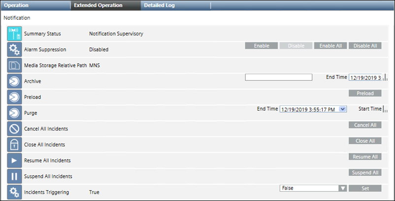1 | Set | Allows you to automatically trigger incidents by selecting True in the drop-down list. To prevent automatic triggering of incidents, select False and thereafter click Set. |