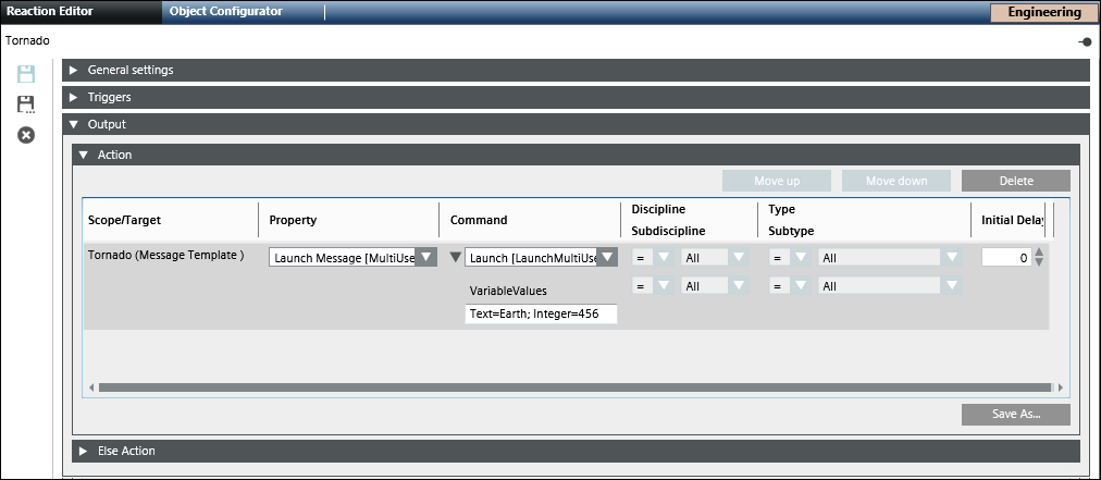 - Open the Output expander and thereafter open the Action expander.