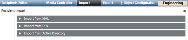 The Import from XML expander allows the import of recipients from an XML file.