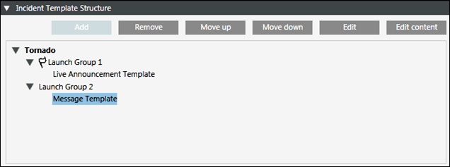 - Remove: Removes the selected launch group as well as the notification template from the incident template.