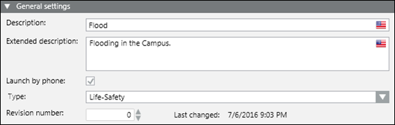 - Stop on alarm ending: Allows you to specify whether the incident stops when the alarm has been fully handled (that is, when the event disappears from Event List). Default value is Yes.