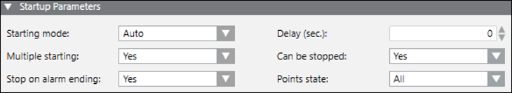- Starting mode: Allows you to specify whether the alarm-triggered incident is dispatched with or without operator intervention. By default, the starting mode is Auto.