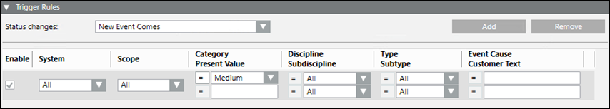- Trigger Rule: Defines the filter rules that can be applied to events.