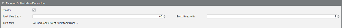 - Message Optimization Parameters(Available only for Reno Plus and MNS license users): Provides a way to group the events raised during quick succession and generate a consolidated message (summary incident) describing the event burst situation.