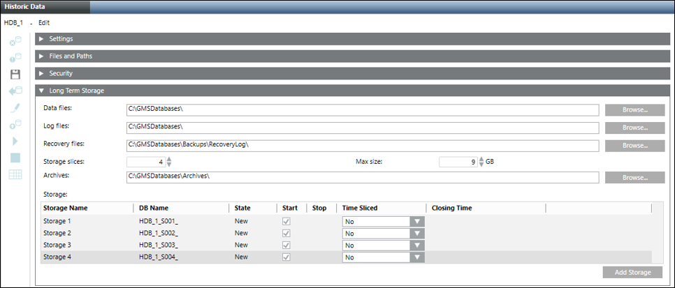 e. In the Long Term storage expander, click Add Storage four times to create four long term storages.